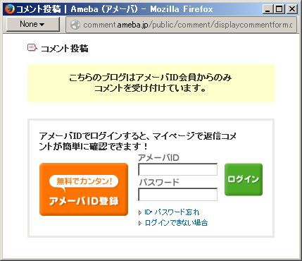 「ã“ã¡ã‚‰ã®ãƒ–ãƒã‚°ã¯ã‚¢ãƒ¡ãƒ¼ãƒID会員ã‹ã‚‰ã®ã¿ コメントをå—ã‘付ã‘ã¦ã„ã¾ã™ã€‚」を外ã—ã¦ãã ã•ã„