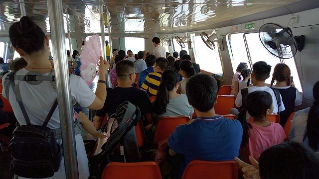 ä¹å·žå³¶ã®ç´¹ä»‹ã—ã¦ã„ã¾ã™ã€å…ˆãšã¯èˆŸã®ç´¹ä»‹ã€èˆ¹ã®å¤–観ã¨èˆ¹å†…ã¯ã“ã‚“ãªæ„Ÿã˜ã§ã™ã€è›‡å£æ¸¯ã‚„香港港ã¨ã‚’é‹è¡Œã—ã¦ã„るフェリーã¨ã¯å¯ä¹Ÿé•ã„ã¾ã™ãï¼ã€æ¤…åã¯ç¡¬ã„ヤツã§ã™ï¼ã€ã‚¨ã‚¢ã‚³ãƒ³ãŒæœ‰ã‚Šã¾ã›ã‚“ï¼ã€æ‰‡é¢¨æ©Ÿã ã‘ã§ã™ï¼ã€çª“全開ã§ã™ï¼ã€ãã®ä»£ã‚り潮風ãŒå¹ãè¾¼ã‚“ã§æ°—æŒã¡è‰¯ã„ã§ã™ï¼æµ·é¢ãŒç›®ã®ä¸‹ã«è¦‹ãˆã¾ã™ï¼èˆªè¡Œä¸ã¯å¸ã‹ã‚‰å¤–れã¦ãƒ‡ãƒƒã‚(甲æ¿)ã«å‡ºã¦ã§ã‚‚ãŠå’Žã‚ã‚りã¾ã›ã‚“ï¼ã¾ã€ã‚る程度自由ã§ã™ã。