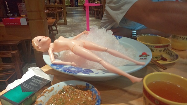 四巿–™ç†ã¨ã„ãˆã°ãƒžãƒ¼ãƒ©ãƒ¼ï¼è¾›ã„を通り越ã—ã¦ã„ã‚‹ã‘れã©ã€ç¾Žå‘³ã—ã„ï¼ä¸¸ã„é‹ã«ä»•切ã£ã¦ã€äºŒã¤ã®ã‚¹ãƒ¼ãƒ—å‘³ãŒæ¥½ã—ã‚ã¾ã™ãŒã€é€”ä¸å‡ºã¦æ¥ãŸã®ãŒã‚³ãƒ¬ï¼ãˆï¼ï¼Ÿï¼Ÿ( ̄▽ ̄;)!!ガーï¾ã€‚ãƒãƒ¼ãƒ“ー人形???判りã¾ã›ã‚“ãŒè‚‰ã‚’ã¾ã¨ã£ã¦ã„ã¾ã™ã€‚肉ã®å‘³ã‚ˆã‚Šã‚‚ã€ã“ã®äººå½¢ã«æ°—ãŒè¡Œã£ã¦ã—ã¾ã„ã¾ã—ãŸã€‚ã¾ã€è‰¯ã„ã‹ï¼¼(^▽^)ï¼