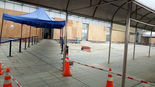 アノå°é¢¨è¢«å®³ãŒã‚ã£ã¦ã‹ã‚‰ç æµ·ãƒ»ä¹å·žæ¸¯ã‚’利用ã™ã‚‹ã®ã¯åˆã‚ã¦ã€ãã“ã§æµ·å´ã‹ã‚‰è¢«å®³ã®çжæ³ã‚’写真ã§è¨˜éŒ²ã—ã¦æ¥ã¾ã—ãŸã€‚港ã£ã¦æ¡Ÿæ©‹(サンãƒã‚·)ãŒä¸²åˆƒã®ã‚ˆã†ã«æµ·ã«è¿«ã‚Šå‡ºã—ã¦ã„ã¾ã™ã‚ˆã­ã€ã“れã¯ä½•å‡¦ã®æ¸¯ã‚‚一緒ã ã¨æ€ã„ã¾ã™ãŒã€å†™çœŸã‚’ã”覧下ã•ã„ã€ç æµ·ãƒ»ä¹å·žæ¸¯ã®å ´åˆã¯è­·å²¸ã‹ã‚‰æ¸¯ãƒ“ルã¾ã§ã¯10メートルも有りã¾ã›ã‚“ã€è­·å²¸ã¯ä½Žãã¦ã€æ³¢æ¶ˆã—ãƒ–ãƒ­ãƒƒã‚¯ã®æ§˜ãªãƒ¢ãƒŽãŒãªãã€å¤§é¢¨ã«ç…½ã‚‰ã‚Œã¦å¤§æ³¢ãŒãã®ã¾ã¾ãƒ“ルã®çª“ã‚¬ãƒ©ã‚¹ã‚’å‰²ã‚Šã€æµ·æ°´ãŒå…¥ã£ãŸã®ã ã¨åˆ¤ã‚Šã¾ã™ã€‚勿論復旧工事ã¯é€²ã‚“ã§ã„ã¾ã™ãŒã€ä½•時回復ã™ã‚‹ã‚„ら判らãªã„状æ³ã§ã™ã­ã€‚(⌒・⌒)ゞイヤァ