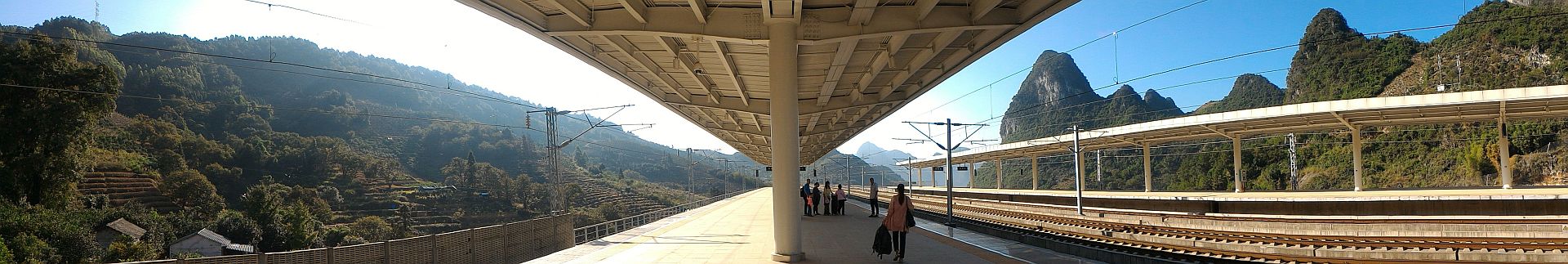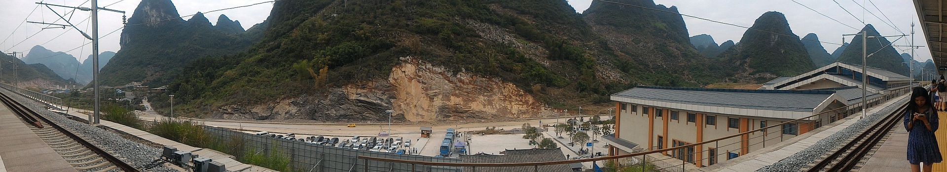 高鉄:阳朔(ヤンスウ)é§…ã§ã™ãŒã€ãƒãƒƒã‚リ言ã£ã¦è¾ºã´ãªæ‰€ã«ã‚りã¾ã™ã€‚阳朔駅ã¸è¿‘ã¥ãã¨å†™çœŸã®ã‚ˆã†ãªéžå¸¸ã«è¦‹æ™´ã‚‰ã—ã®è‰¯ã„å ´æ‰€ã‚’é€šéŽã—ã¾ã™ãŒã€ã¤ã¾ã‚Šé§…ã¯é§…ã¯å±±ä¸ã«æœ‰ã‚‹ã¨ã„ã†äº‹ã§ã™ã€‚