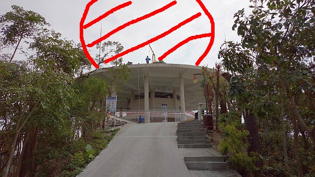 ã•ã¦å†™çœŸã§ã™ãŒå—å±±é ‚ä¸Šä»˜è¿‘ã®ãƒ‰ãƒ¼ãƒ ãŒä»Šã¯æ’¤åŽ»ã•れç¾åœ¨ã€è£œå¼·å·¥äº‹ãŒè¡Œã‚れã¦ã„ã¾ã™ãã€‚ã‚¢ãƒŽè¦æ¨¡ã‹ã‚‰ã—ã¦ç›´å¾„10ãƒ¡ãƒ¼ãƒˆãƒ«ï¼Ÿèµ¤ç·šã§æ›¸ã„ãŸæ§˜ãªå·¨å¤§ãªãƒ‰ãƒ¼ãƒ ãŒä¹—ã‚‹ã¨æ€ã£ã¦ã„ã¾ã™ã€‚ã“ã“ã¯å…¬åœ’ã¨ã—ã¦æ•´å‚™ã•れã¦ãŠã‚Šã€ã“ã®æ–½è¨ã®è„‡ã‚’通éŽã›ã–ã‚‹ã‚’å¾—ãªã„ã‹ã‚‰ã€ç«‹ã¡å…¥ã‚Šç¦æ¢ã«ã¯å‡ºæ¥ã¾ã›ã‚“ã€ãªã®ã§å‘¨å›²ã¯å޳é‡ã«ãƒ•ェンス仕切られã¦ã„ã¾ã™ã。ã“ã“ã§ãƒ‰ãƒãƒ¼ãƒ³ã‚„æºå¸¯é›»è©±ã‚’使ã£ã¦ã‚ˆã„ã‹ï¼Ÿï¼Ÿãれã¯åˆ¤ã‚Šã¾ã›ã‚“ãŒã。