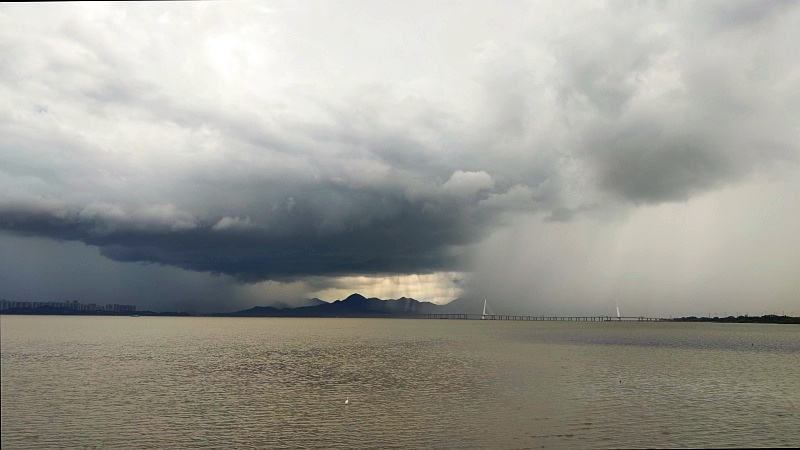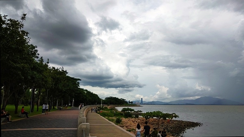 ã©ã†ã‚„ら雲行ããŒæ€ªã—ããªã£ã¦ãã¾ã—ãŸã€å¯¾å²¸ã®é¦™æ¸¯é™ã‚Šå‡ºã—ã¾ã—ãŸãã€ã¿ãŸã¨ã“ã‚雲ãŒåŽšãã¦æš«ãã¯æ¢ã¿ãã†ã«ã‚りã¾ã›ã‚“ã€ãã—ã¦ã“ã¡ã‚‰å´ã®å—山区ã‚ãŸã‚Šã‚‚雲行ããŒæ€ªã—ããªã£ã¦æ¥ã¾ã—ãŸã€‚例ã®å—山も高層ビルもã€ãã—ã¦æ·±ã‚»ãƒ³æ¹¾ä½“育館ã‚ãŸã‚Šã‚‚雲行ããŒæ€ªã—ã„(ノд`)