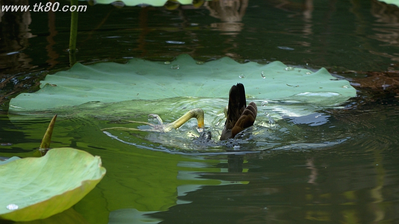 ãƒãƒ³ã®ç‹©ã‚Šã§ã™ã~蓮ã®è‘‰ã«ä¹—ã£ã¦æ°´ä¸ã®ä¸€ç‚¹ã‚’ç‹™ã£ã¦ã„ã¾ã™ã€ãã—ã¦ä½•度も何度もダイブã—ã¦ã„ã¾ã™ã((´∀ï½€)) å°éšã‚„å°ã‚¨ãƒ“ãŒå±…るよã†ã ã‹ã‚‰ã€ãれらを食ã¹ã¦ã‚‹ã®ã‹ãª((´∀ï½€))